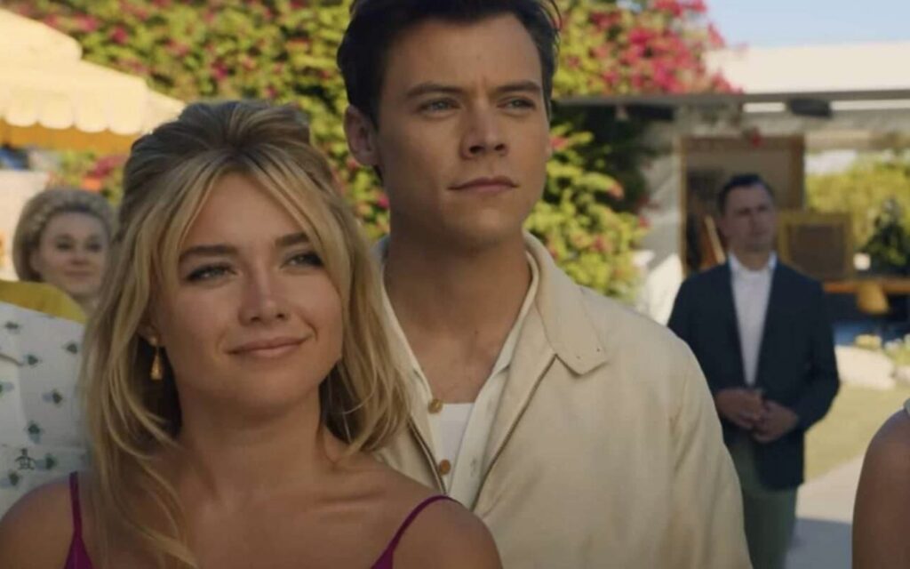 Nello specifico si fa riferimento al contesto di fondo, l’idilliaca cittadina di Victory Town, popolata da famiglie altoborghesi composte da mariti arruolati per un misterioso progetto e mogli subordinate ad una condizione di servilismo, il cui scopo è quello di garantire una vita domestica agiata ai rispettivi uomini. Una distribuzione di ruoli apparentemente accettabile se non addirittura piacevole per l’intera popolazione, perlomeno fino al momento in cui iniziano a verificarsi una serie di interferenze che portano la giovane casalinga Alice (Florence Pugh) ad interrogarsi sulla realtà che la circonda, sul suo ruolo all’interno di essa e sulle verità celate dal compagno Jack (Harry Styles).