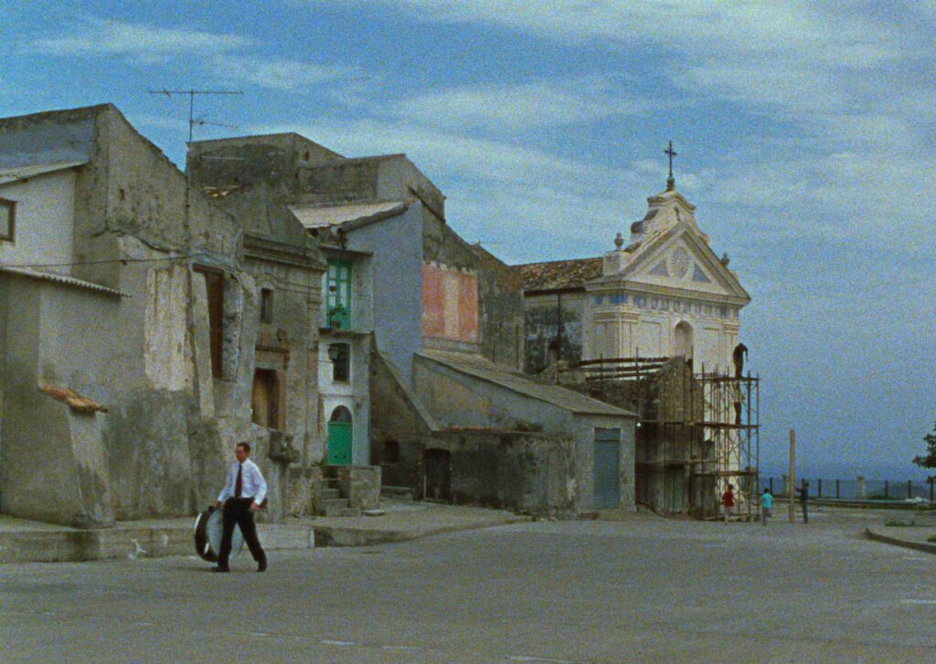 Quindi un ritorno al Sud, un’immersione nell’entroterra, una riscoperta personale (il protagonista del film è il nonno del regista), un tentativo di interrogare la vita dei luoghi, di dare forma al paesaggio. Il paese calabrese di Caulonia è assemblato cinematograficamente, nella sua verticalità, nella sua superficie, ma soprattutto nelle sue contraddizioni. Trasuda la memoria di qualcosa di antico accostato al ricordo di qualcosa di abbandonato. La Storia e il relitto sono a un punto di incontro vicinissimo. I campi sono disseminati di auto abbandonate, lasciate a decomporsi, e di navi arenate, quelle delle migrazioni, lasciate ad aspettare qualcuno: una mano che faccia ordine.