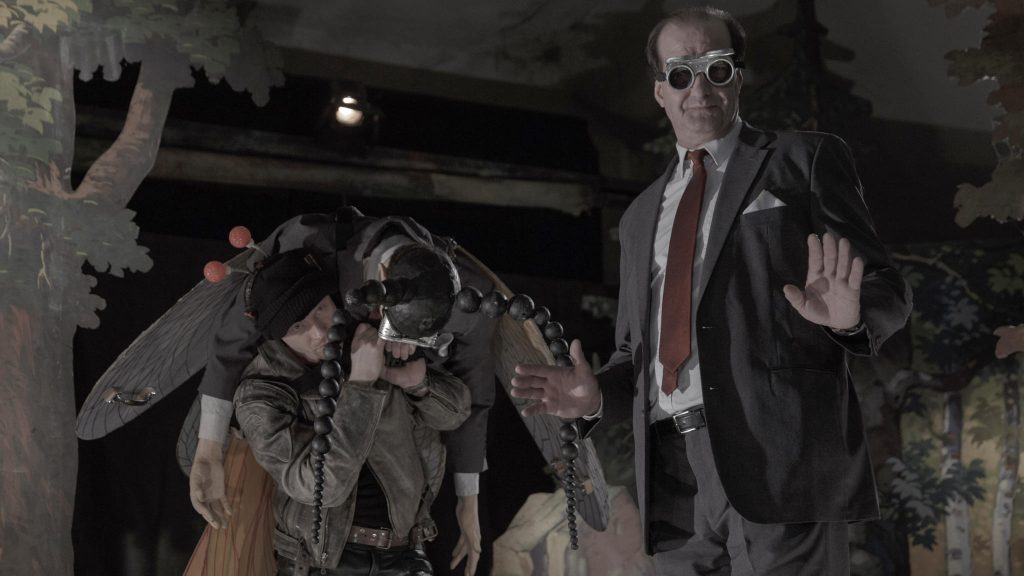 Sul palco il regista-attore "Mr. Cricket" (Jaromìr Dulava) litiga con i suoi interpreti dai buffi costumi antennuti. Non è soddisfatto perchè il pubblico non se la berrà, il pubblico vuole che sembri vero. È curioso perchè se c'è una cosa di cui Insects sembra voler disperatamente fare a meno è la verosimiglianza in tutti i sensi, in specie quella coerenza cinematografica che consentirebbe istintivamente anche a bimbi e illetterati la sospensione dell'incredulità: Svela a intervalli regolari il mezzo cinematografico con uno spirito dissacratorio non lontano da quello del carrello all'indietro che chiude I tre volti della paura (1963) di Mario Bava. Ma la prospettiva è radicalmente diversa: là il compiacimento dell'artigiano iconoclasta che mostra le sagome di cartone la cui ombra ci aveva terrorizzati, qua la "costruzione sulla de-costruzione" di una nuova e diversa coerenza filmica.