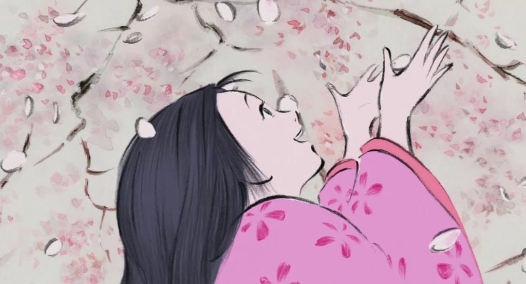 Astolfo andò sulla luna per recuperare il senno di Orlando, guidato da un ippogrifo; Calvino volle che il vecchio Qfwfq si servisse di una barchetta per ritrovare su quel suolo la moglie del Capitano e la Principessa Splendente vi fece ritorno su una nuvola. Letteratura fantastica, da un lato e una delle vette più alte del cinema d'animazione, dall'altro. L' incommensurabile distanza tra Terra e Luna si dissolve in un battito d'ali, attraverso una scaletta, su di una nuvola spugnosa e l'addio di Isao Takahata non poteva che essere altrettanto leggero, umoristico e dolce. La storia della principessa splendente è un racconto densissimo di implicazioni morali e simboliche - allusive, specialmente, della mitologia giapponese - in cui è come se ci fosse sempre qualcos'altro da ricercare oltre quei volti bianchi e le composizioni cromatiche così minuziose e attente; quell'oltre che si rivelerà poi essere il motivo dell'insoddisfazione della piccola Kogauya, dono elargito dai cieli a cui dovrà pur sempre fare ritorno.