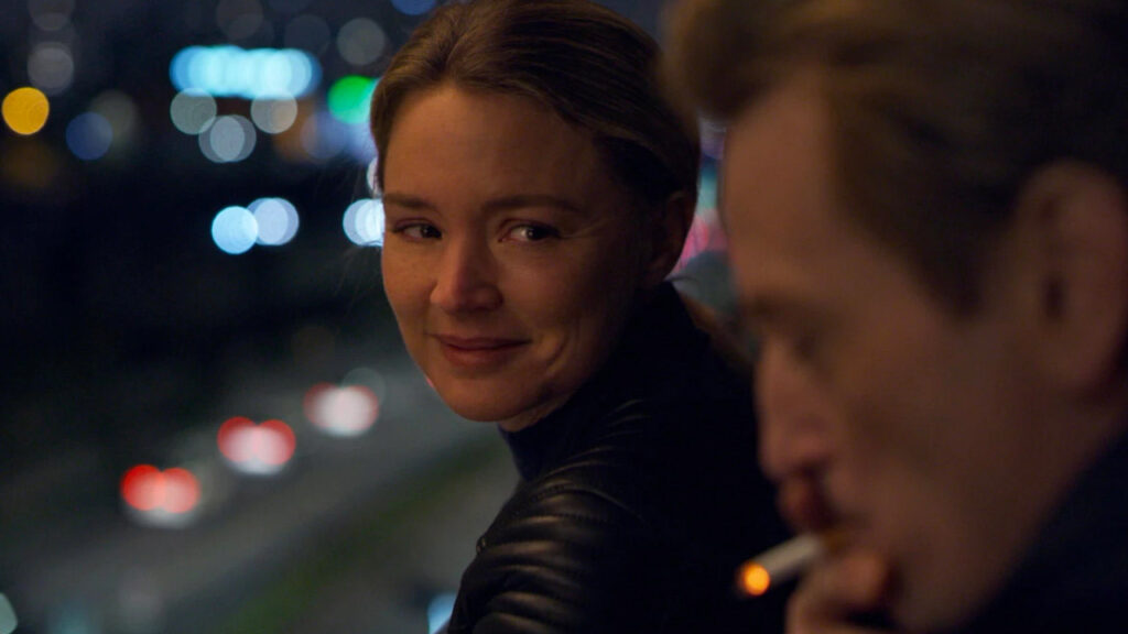 Dall’iniziale disinvoltura con cui guadava la capitale in sella alla sua Triumph, vediamo Mia acquattarsi nel buio di una stanza, dopo aver conosciuto il fantasma d’una vittima, intenta a osservarla immobile. Dall’elasticità spontanea impiegata per passare, senza tergiversare, dal francese al russo, e viceversa, la donna, provvista di brandelli di memoria, avvertirà una claustrofobia inesprimibile, quando invitata a partecipare a un gruppo di sostegno.
